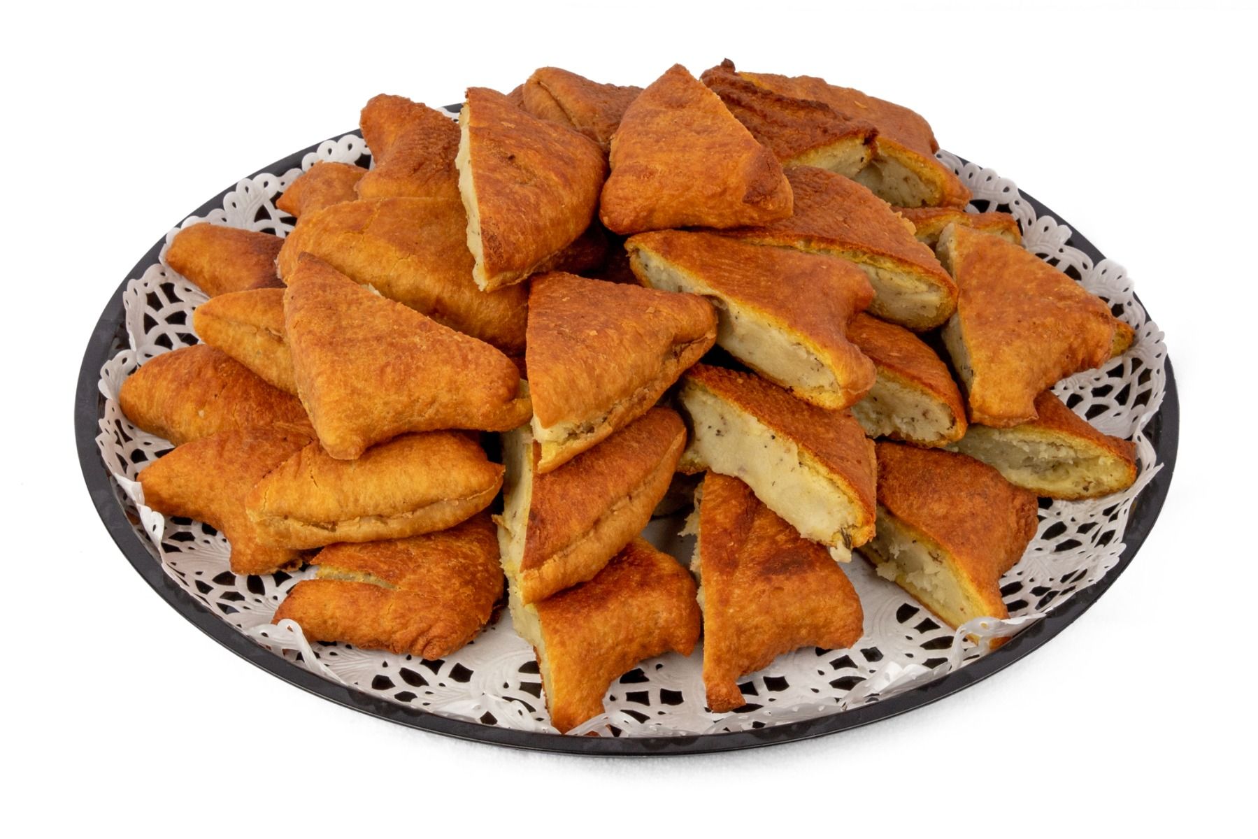 A large knish platter comes with 20 knishes sliced in half (40 total pcs)